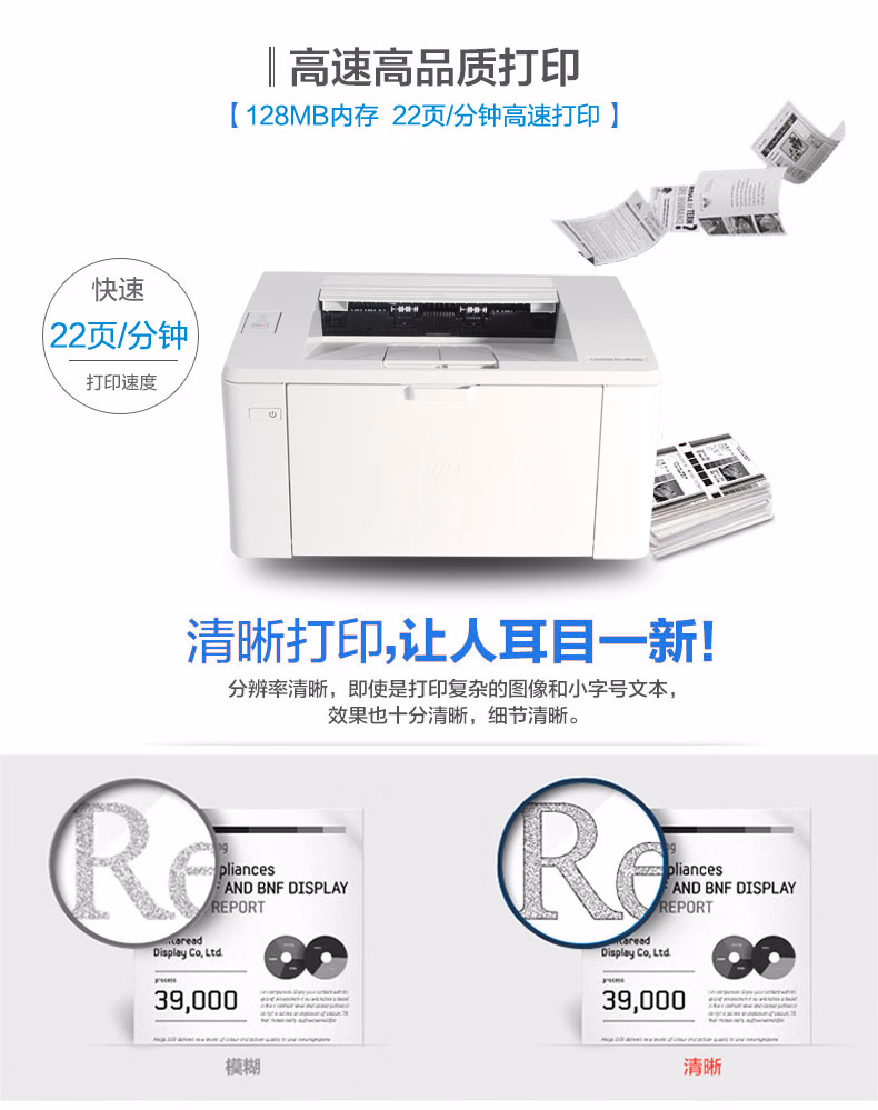 分辨率:黑白(最佳模式):高达600x600dpi、HP FastRes 1200(1200dpi品质);黑白(正常模式):高达600x400dpi、HP FastRes 600(600dpi品质)